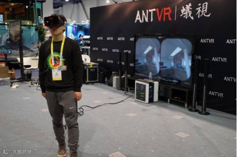 在此次展会上,有超过40家企业展出了虚拟现实系统和沉浸式产品。虽然VR界的巨头Oculus、HTC以及索尼vive“风光无限”,刷屏力度十分强劲,但中国的企业也不容小觑,蚁视、大朋、3Glasses、Simlens VR等国内公司也携VR产品悉数亮相。