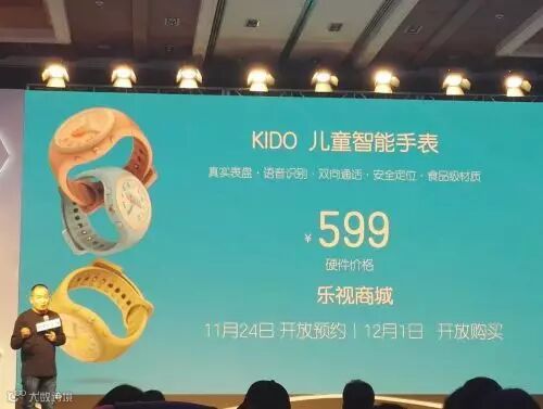 作为乐视布局儿童智能硬件生态产业链的一部分,KIDO也受邀参加了此次发布会,并在发布会上推出了最新款的KIDO儿童智能手表。KIDO无论是精致趣味的外观、真实的表盘设计,还是语音识别、双向通话、监听等功能,都是从孩子和家长的具体需求出发,力争推出更具市场竞争力的儿童智能穿戴产品。KIDO儿童智能手表售价599元,11月24日将在乐视商城开始预约,12月1日开放购买。