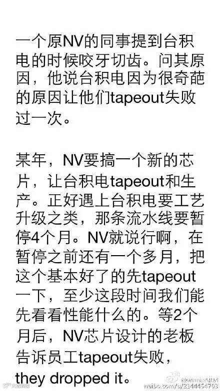 当然,TSMC这坑的远不止高通一家,NVIDIA、AMD的GPU,联发科的SoC也都指着台积16FF+下锅。联发科就比较明智,Helio X20直接用上代的20Bulk,Helio X30倒是打算用16FF+,只不过推出时间是明年下半年……至于NVIDIA,看了下面这个真实故事改编的段子就知道被坑成什么样了: