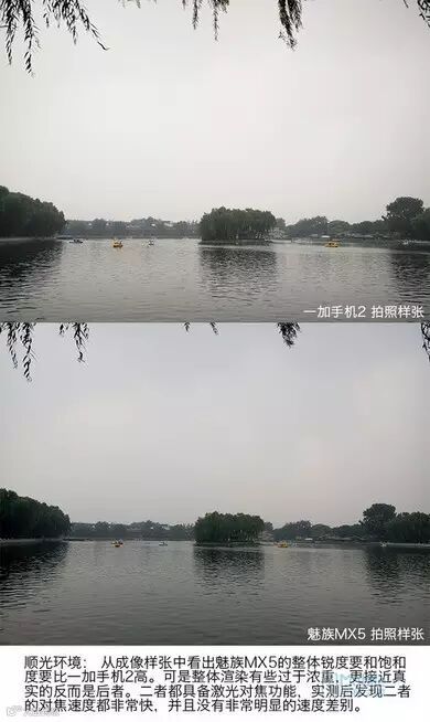 均为1080p、401ppi的两款手机在直观感受上没有什么差异,至于一加手机2是TFT,魅族MX5是AMOLED屏之间的差别。简单来说,后者颜色会更鲜艳,屏幕像素排列以及发光原理的特性会导致比一加手机2更节电一些。