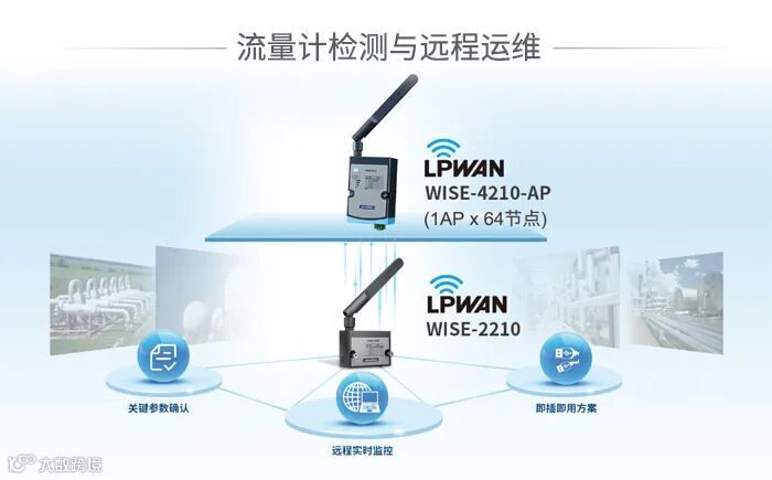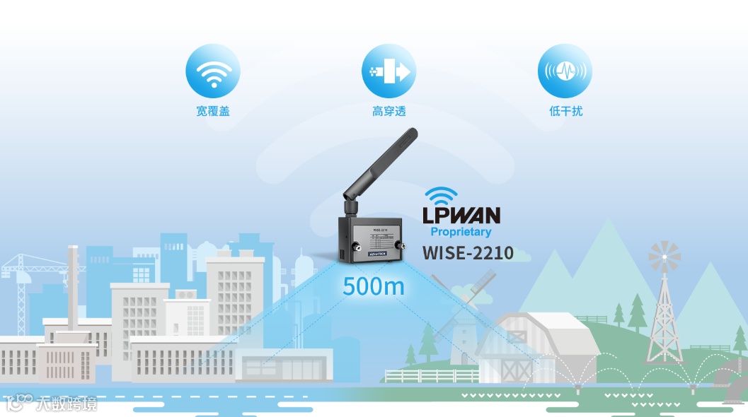 针对譬如工厂、仓库等重工业广域环境,WISE-2210系列采用无线LPWAN传输,传输范围可达500米,且相比2.4GHz频段,覆盖范围更广,穿透能力更强,信号干扰更小,同时可避免复杂通信及繁杂布线。在实测中传输距离可达一公里左右,符合工厂大多应用环境。WISE-2210系列可利用传感器直接供电,实现了边采集边供电的设计,更加简单易操作。