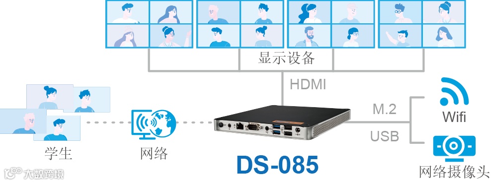疫情迫使学校采用远程方式进行授课。DS-085通过可同时连接四个显示器,采用易于集成的超薄设计,实现不同地点老师和学生的实时音视频互动教学。通过创造身临其境的课堂体验,远程学习的参与度和体验感提升到了新水平。