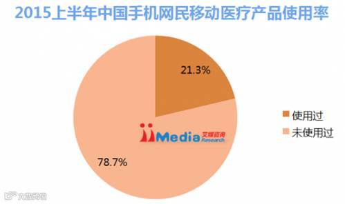 iiMedia Research数据显示,2015年上半年,21.3%的中国手机网民表示曾经使用过或正在使用移动医疗产品,78.7%的中国手机网民表示未使用过移动医疗产品。