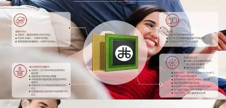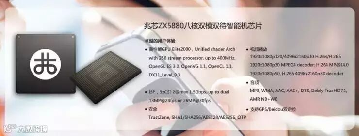 兆芯的Elite1000被用在机顶盒上,官网资料上显示性能大约为12-15个Mali400@600Mhz,能够支持双路同时编解码1080P@60fps。