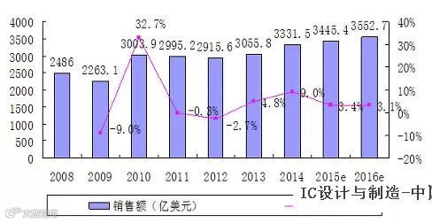 2008-2014年全球集成电路市场规模及增速 数据来源:WSTS,2014.12