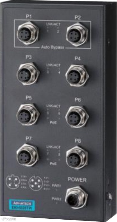 EKI-6528TPI 是经过 EN50155 认证的工业交换机,具有 IP40 保护和宽温支持,专为轨道交通而设计。EKI-6528TPI 具有4 个支持IEEE 802.3af 的 PoE 端口,每个端口可提供高达 15.4 瓦的功率。M12 连接器可确保工业通信应用的高可靠性连接。