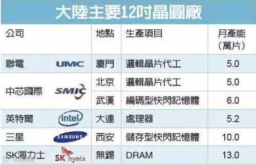 下面就按产能介绍国内五大12寸晶圆厂及其产能