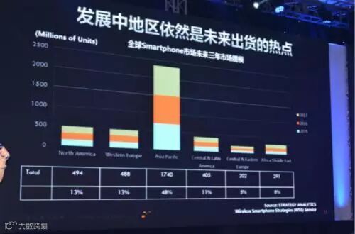 曹强博士预测,从2015到2017年,欧洲和美国市场的手机出货量将分别在5000万台,而亚太地区将达到2500万台。