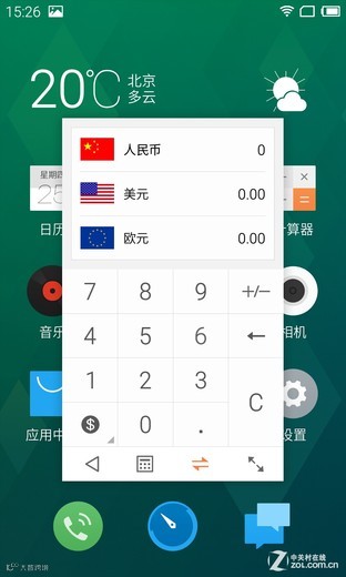 Flyme 4的计算器能扳回一局,因为它不仅加入了汇率换算,还支持将窗口独立出来,同时也不耽误你计算,这对于你要一边在手机中查找数据,一边在计算器中进行计算是非常便捷的,省去了应用间的来回切换。