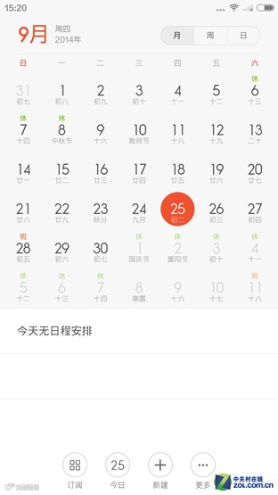 其日历也是全面娱乐化,加入了70多种订阅,包括黄历、球赛、笑话以及热映电影预告等。不过这个订阅魅族也有,两者算是旗鼓相当。