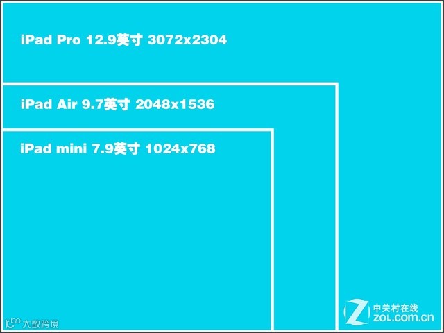 7.9英寸、9.7英寸和12.9英寸屏幕大小对比