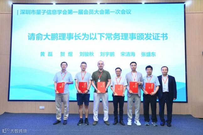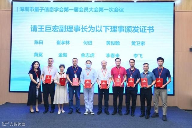 会员大会审议通过了《深圳市量子信息学会章程》、《第一届会员大会理事会、监事会、领导机构选举办法》、《深圳市量子信息学会会费标准及管理办法》,并以无记名投票选举出第一届理事会和监事会。经投票,选举理事共61人,常务理事19名,俞大鹏为理事长,陈宁、郭清蓝、王巨宏、夏俊、徐讯、赵桂标、周玉为副理事长。此外,会议选举陈十一为监事长,白志强为秘书长。俞大鹏理事长,王巨宏、徐讯、夏俊、赵桂标四位副理事长分别为出席会议的当选理事及监事颁发证书。