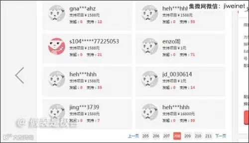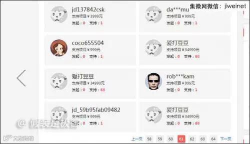 在微博平台上,已经有很成熟的第三方工具和标准可以轻松判断某个话题是否是营销行为。而在众筹平台上,暂时还没有较好的技术手段来对某个项目进行准确的判断。不过,也正因为这个原因,目前众筹项目在进行运作时,还存在很多人为操作的痕迹。在张宇的指点下,《假装是极客》浏览京东众筹上的几个知名项目的支持者列表后,果然发现了一些端倪。