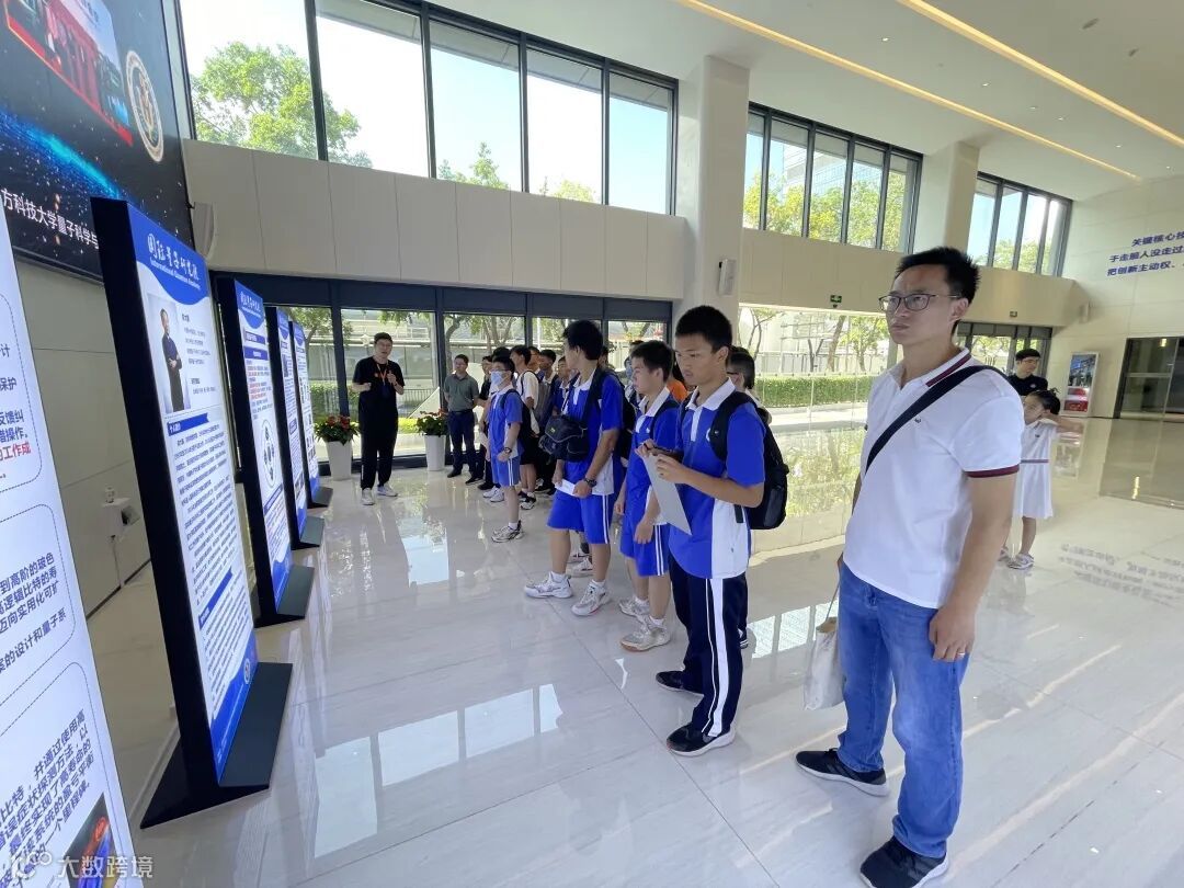 活动伊始,量子科学与工程研究院党委组织委员、团总支书记董元浩带领宝安中学师生参观了研究院院况及科研成果展区,并观看了量子研究院的宣传片。