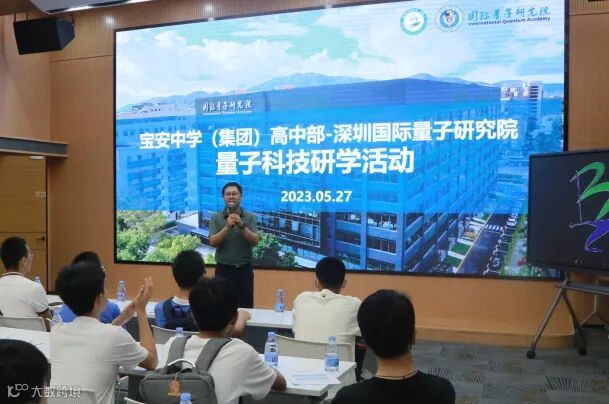 2023年5月27日下午,宝安中学(集团)高中部蔡毅主任带领30余名师生来到深圳量子研究院参观交流。研究院路尧老师给同学们带来了精彩的科普报告,在同学们心中播撒了热爱科学、追寻梦想、探索未知的种子。