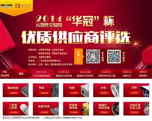 本届优质供应商评选候选的十大行业依然为:集成电路、二/三极管、电阻/容、光电、电源、壳体、安防、接插件/电线电缆、传感器/继电器、仪器仪表与电子工具。