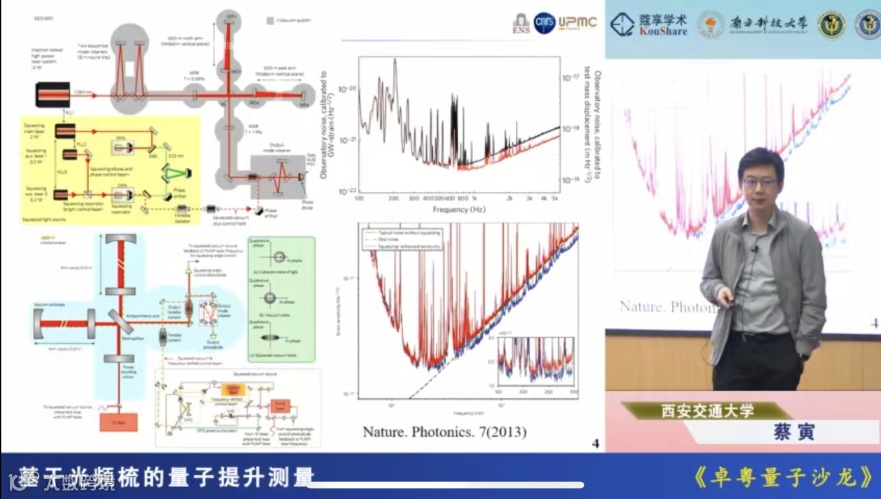 蔡寅研究员介绍了多模量子纠缠网络及量子信息的最新进展,并围绕可拓展压缩光源的产生、操控以及应用,介绍了多参数量子传感的相关工作。长期以来,量子纠缠的可拓展性一直是国际热点研究方向。针对其中的可拓展性问题,报告中,首先介绍了一种自上而下构建量子纠缠的新思路,利用光学频率梳本身具有多频率的特性,通过一次非线性光学参量过程同步实现所有频率成分的下转换,以实现一种天生具有多频率纠缠的量子光源;并进一步介绍了如何利用这种多模量子纠缠系统实现光谱多参数的量子精密测量;最后,报告人简要讨论了深圳量子院的最新微纳光学技术与光量子信息结合的未来前景。