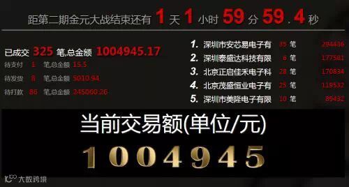 自2014年12月5日天交商城“上我给你钱”第二轮奖励计划启动以来,已成功完成线上交易325笔,总成交金额高达1004945元!!