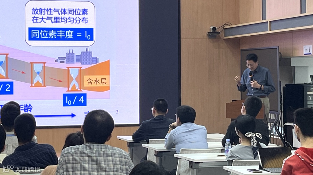在报告的最后一个部分,卢老师介绍了各种放射性同位素定年的相关应用,其中许多涉及到水文和大气相关的工作。比如,利用该方法分析海水入侵问题来评估沿海地区农田的污染、利用该方法分析以色列地下水的源头、通过对81Kr定年分析某地区地下水的流动从而为核废料存放地选址做安全评估等。这些应用的介绍丰富有趣,好像真的带着量子院的师生们在世界各地走了一圈。