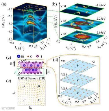 随后,刘奇航课题组联合陈朝宇课题组通过自旋角分辨光电子能谱仪,选取BiOI这一层状材料对上述理论进行实验验证。该材料具备非点式对称性(空间群为P4/nmm),满足早前工作所提出的对称性要求。研究团队通过自旋角分辨光电子能谱仪发现,布里渊区边界处存在很强的隐藏自旋极化,而布里渊区的中心处隐藏自旋极化几乎为零。这一发现与理论计算结果很好的吻合,验证了非点式空间群对称性对于隐藏自旋极化的调控作用。