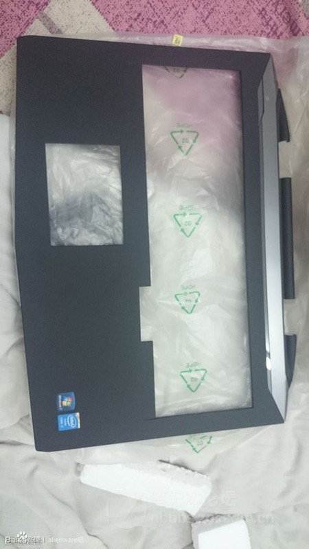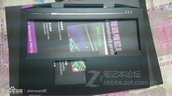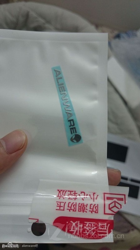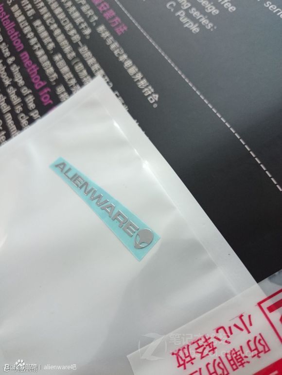 下午就收到了放在小区代收点的亚光黑贴膜以及店家送的外星人LOGO金属贴。