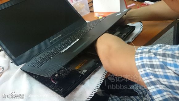 时间过了一星期,也就是在今天。周六睡了懒觉,醒来后心血来潮想看看自己的电脑除了cpu和显卡这些主打性能方面的地方,那些还可以升级。于是效仿上周五DELL工程师的拆机流程,比较容易但不轻松的拆下了D面和C面。因为刚入手电脑的时候就在除D面和A面及侧面之外的地方贴上了碳纤维贴膜,并且平时经常擦拭电脑。今天又想换个造型,看一下它原来那种涂满类肤质图层所散发的深沉气息。我装回机之后犯了个错误,就是把光驱位下面的固定螺丝(L2.5*3)装成了L2.5*8的,直接导致C面被穿了四个孔。虽然不影响使用,但是本来今天就是冲着外观来的,唉( ⊙ o ⊙ )。我现在准备把那边的小孔磨平买了亚光黑的贴膜再覆盖上。