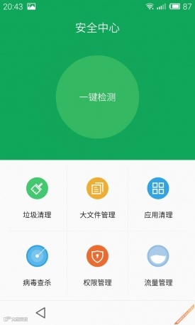 与腾讯以及LBE合作的安全中心这一次终于以应用的方式呈现在用户面前了。在安全中心中,用户不仅能一键检测手机安全情况。同时还能支持垃圾清理、大文件管理、应用清理、病毒查杀、权限管理以及流量管理六大功能。用户再也不用去自行安装第三方安全应用程序来管理自己的手机了。