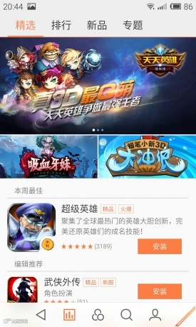 Flyme OS 4.0将应用中心与游戏中心进行了分离,并将两个应用中心分别作为两个独立的应用。而Flyme OS 4.0当中的游戏中心,用户不仅能够在其中下载到自己喜欢的游戏,还能够对游戏进行管理。同时系统还会定期的推荐游戏以及游戏的专属礼包。在游戏中心中,总共有游戏历史、心愿单、我的礼包、游戏管理、礼包中心以及下载管理六个功能选项。