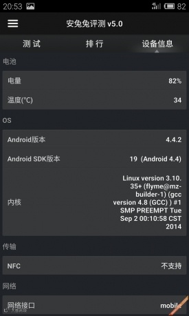魅族MX4搭载了一枚定制智能八核处理器,其CPU型号为联发科MT 6595,主频为2.2GHz,同时搭配PowerVR G6200 GPU以及2GB RAM,最大程度上保证了硬件性能的表现。心高气傲的魅族在MX4的发布会上同样提出了“不服跑个分”的说法。那么接下来我们也通过一系列的跑分测试来实际检测一下MX4的硬件硬性能表现究竟如何吧。