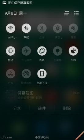 魅族MX4系统设置界面及下拉悬停界面