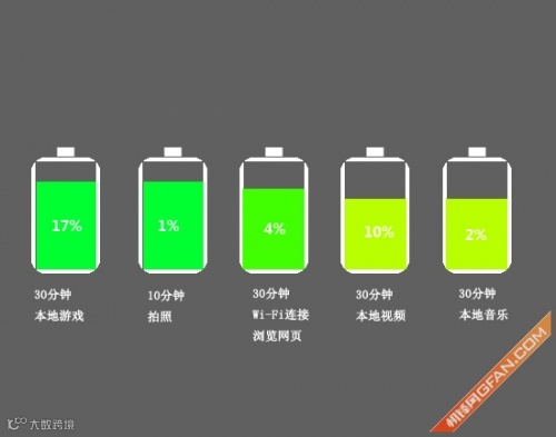 在这里需要说明的是,小编所采用的测试方式为30分钟游戏、10分钟拍照、30分钟Wi-Fi网络连接上网浏览网页、30分钟本地视频以及30分钟本地音乐。