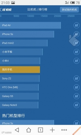 比机机测试:共击败92%的手机