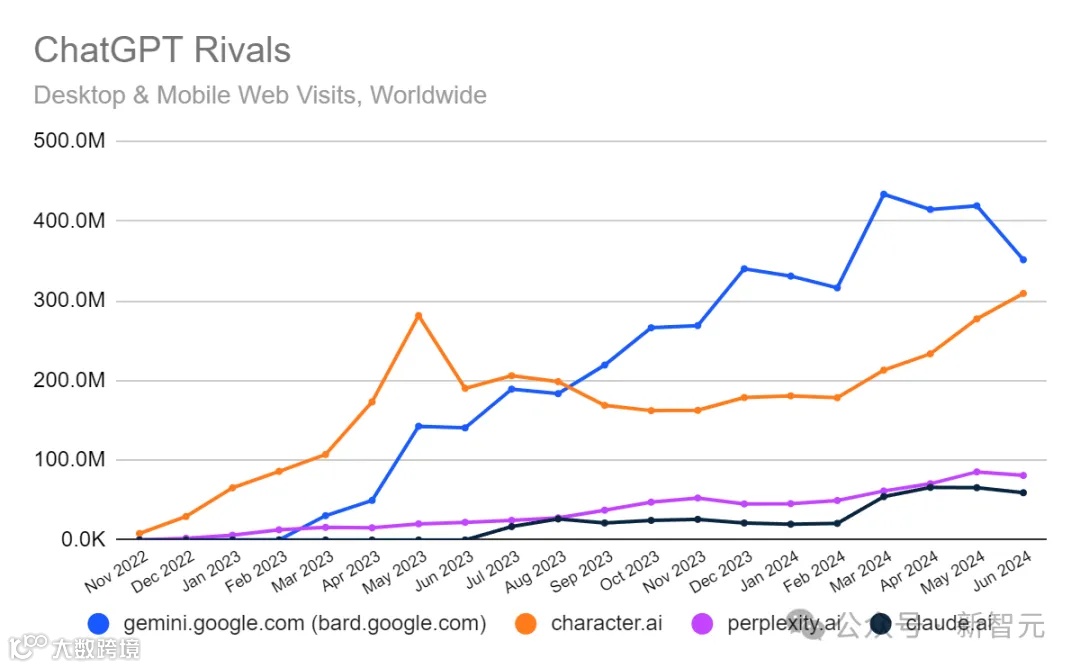 Gemini的月访问量只有4亿左右,很难与ChatGPT竞争。