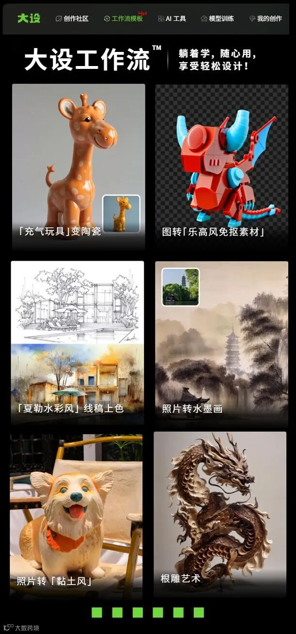 上百个风格多样,好看又好使的工作流模版,尽在大设AI。