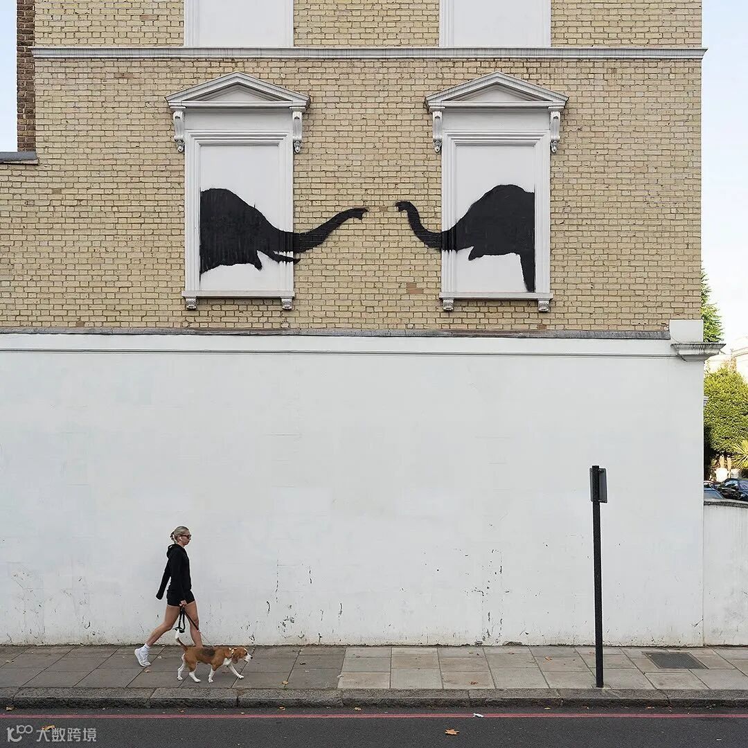 街头涂鸦于Banksy而言,不是内心世界的个性表达,而是对社会事件的犀利评论。他在社交媒体上发布作品的时候,从不解释创作意图——把作品的理解自由,交还给每个人。在创作上,Banksy做的更多是融入的动作。他会基于街头墙面已有元素,涂画出贴合的新人物和物件。新旧融合,造出一个因地制宜的新故事。