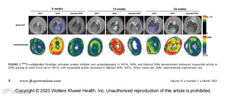 SHR心脏在8周时开始出现99mTc-HFAPi摄取增强,早于不可逆的胶原沉积。