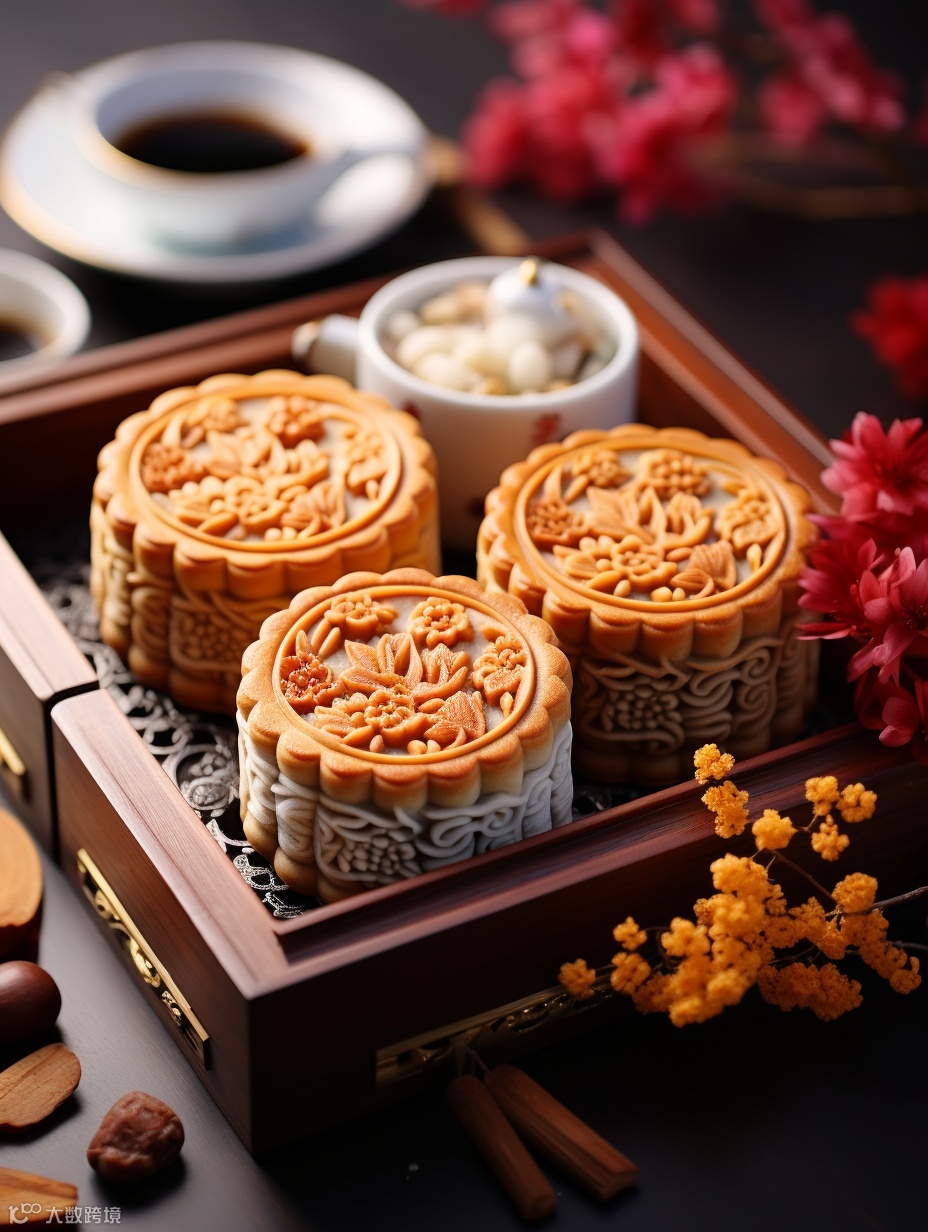 比如刚刚过去的中秋节,他就用AI做了月饼的包装图:
