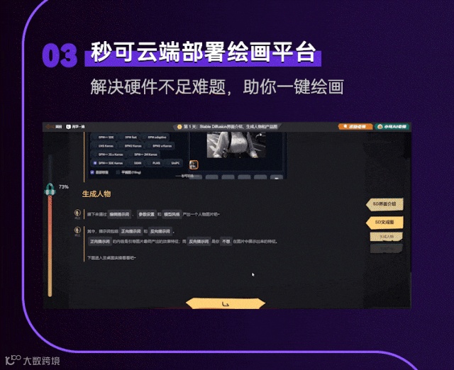 秒可自主研发云桌面教学,免去Stable Diffusion繁琐部署流程,不需要高端显卡,也能云端实操。在线流程出图!