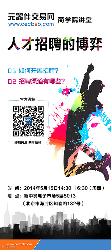 为更好的服务会员企业、更好的满足企业对“人才”的需求,元器件交易网定于5月15日下午中发大厦5层5013室举办“商学院大讲堂”活动。本次活动由 元器件交易网与北京中发新技术交流中心主办,以“人才招聘的博弈”为主题,特邀中发集团人力资源总监吴志强、元器件交易网副总裁刘涛主讲。