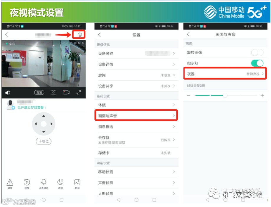 在客户选择智能夜视情况下,若把移动检测设置过于灵敏,夜视灯频繁闪亮和关闭以及告警频出,可能会引起高客诉,若设置不灵敏,可能在人移动在摄像头下无法触发移动侦测,造成夜视灯不亮情况也会引起少部分客诉,因此装维师傅在安装时候一定需要根据客户需求进行合理设置,并跟客户描述清楚:设置不灵敏和灵敏可能会引起状况。