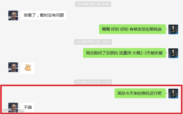 在历时一个星期与周总不断沟通后的修改,调整,网站改版也圆满完成,周总对新的网站非常满意。商机也与之前相比上涨了1倍多,成单更是不用说了。每次有商机咨询,未接通电话,商机团队都会先给访客播回去,询问大概需求,并及时通知周总联系。再与周总询问商机跟进情况。