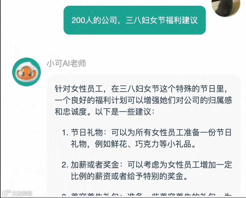 比如他用AI帮助行政小姐姐,为公司的福利方案出谋划策。上个厕所的时间,AI就输出了好几种福利方案,连成本都列得清清楚楚。