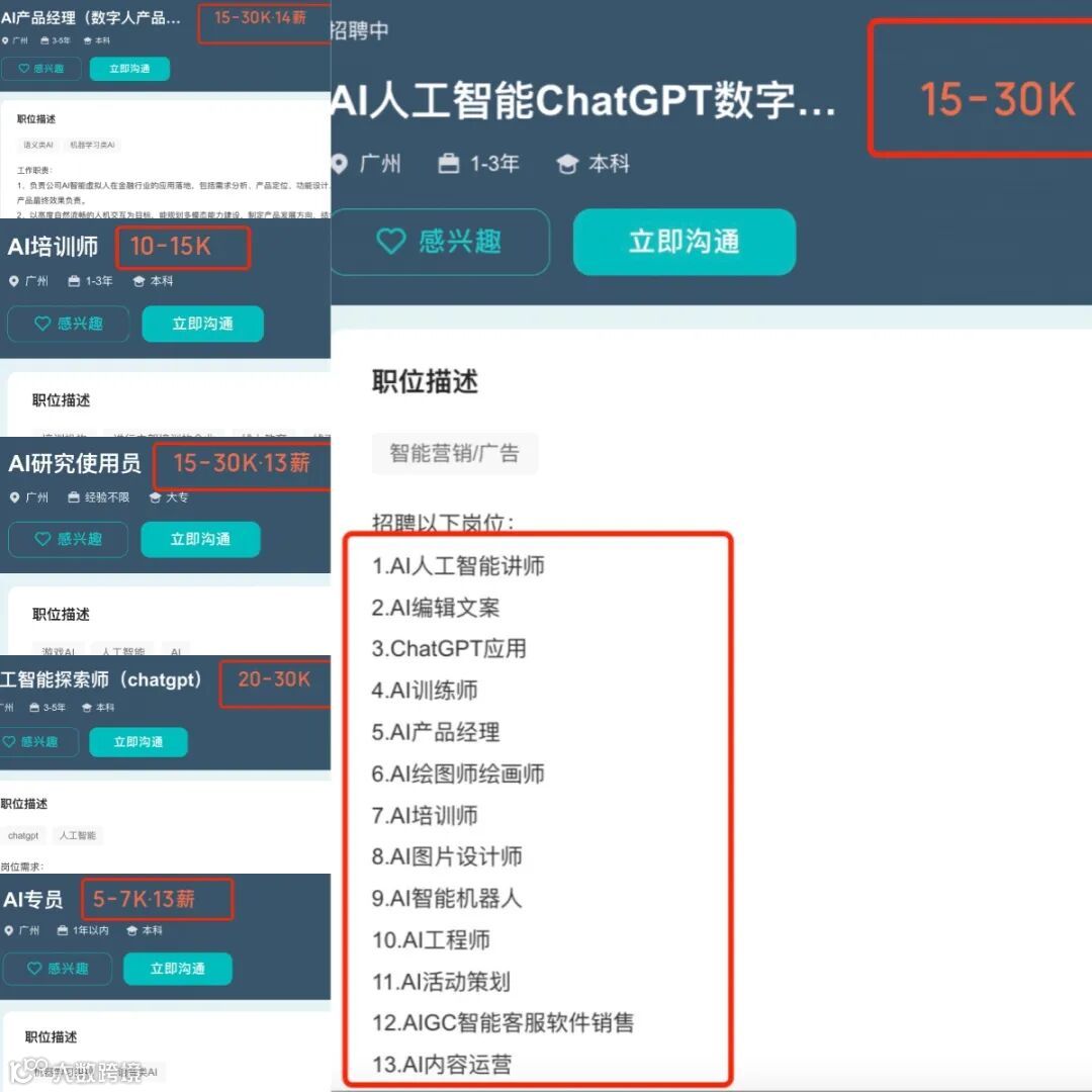 尤其在AI技术刚起步的情况下,这类岗位对工作经验的要求并不高,掌握了AI技术,就相当于给自己的职业生涯多了一项选择和兜底。