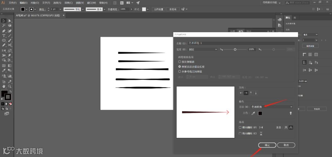2、把制作好的画笔拖进去,选中新建画笔弹窗的艺术画笔,点击确定。