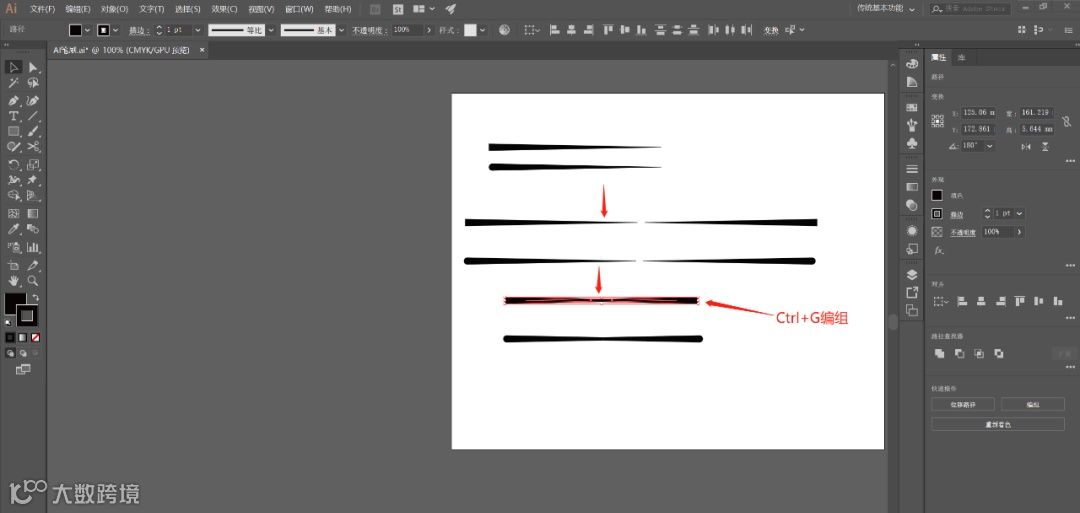 复制前两个已经做好的笔刷,各复制两个,对称使两边尖角面对面,拖动到合适位置,【Ctrl】+【G】编组。
