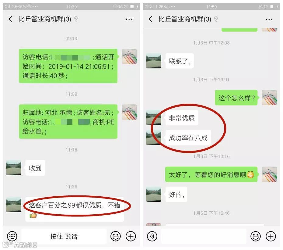 流量宝上线20天,比丘管业收到精准商机22条,并且每条商机都是意向度很高的客户咨询,商机转化率高达百分之八十!