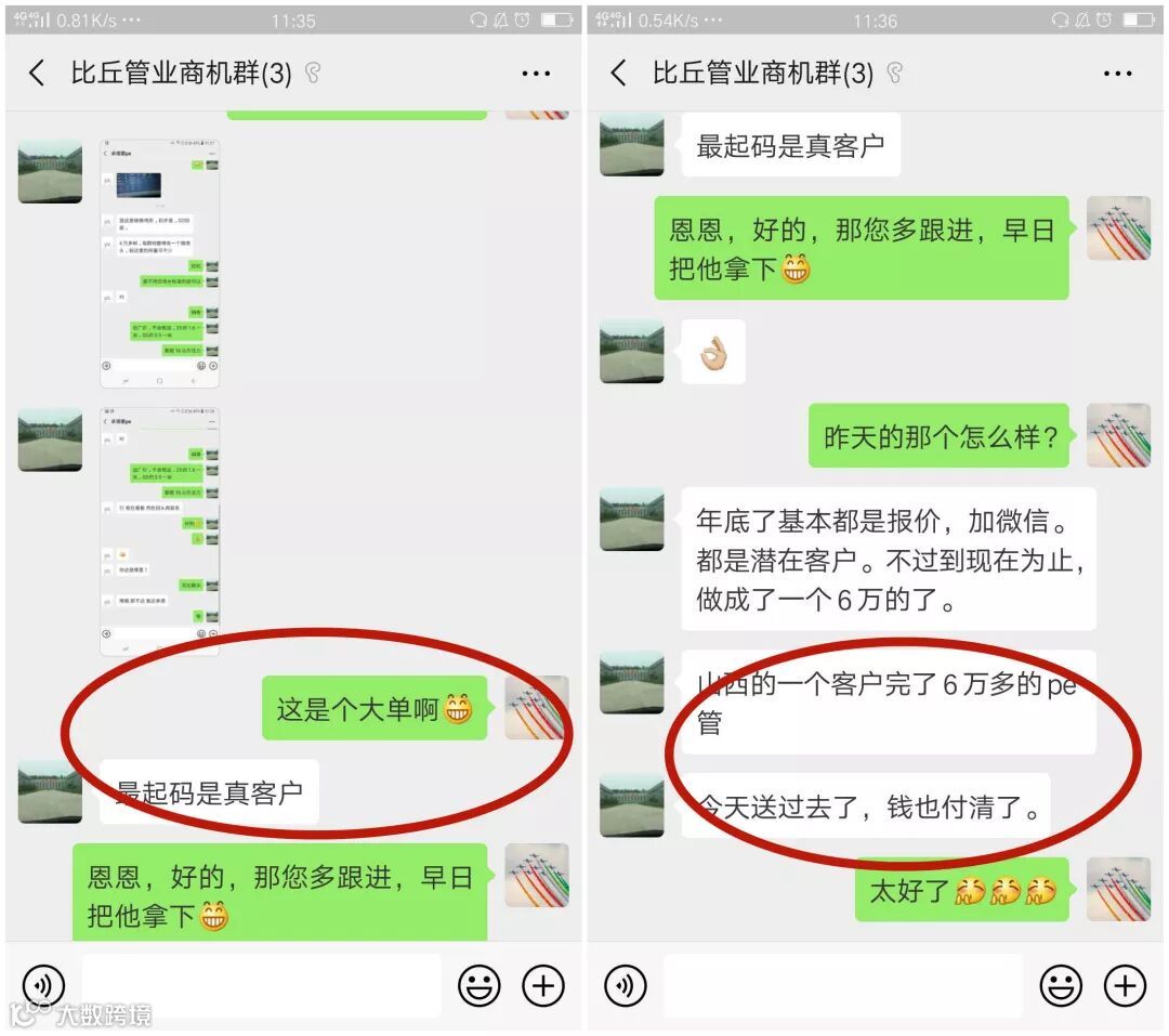我们的服务群,总是很热闹,不是我们的客服在发布商机咨询,就是在跟进商机,付总也总是很热情的在群里给我们反馈目前商机的情况和订单成交的情况。我们的配合越来越默契,付总说:“你们的反馈及时又用心,我很是放心。”