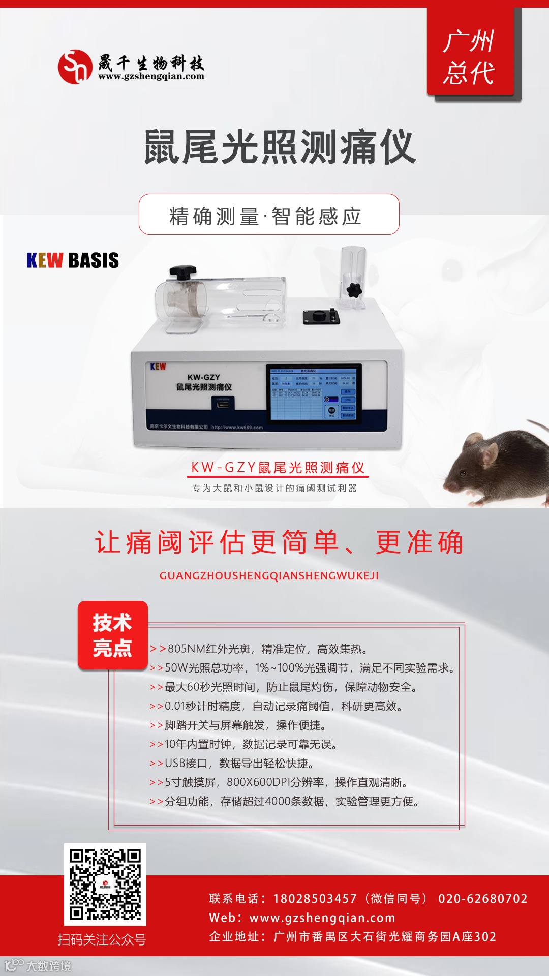 在生命科学和医学研究领域,疼痛机制的研究一直是科学家们关注的焦点之一。为了深入探究疼痛的奥秘,各种实验设备应运而生,其中KW-GZY鼠尾光照测痛仪以其独特的优势,成为了众多科研人员的得力助手。