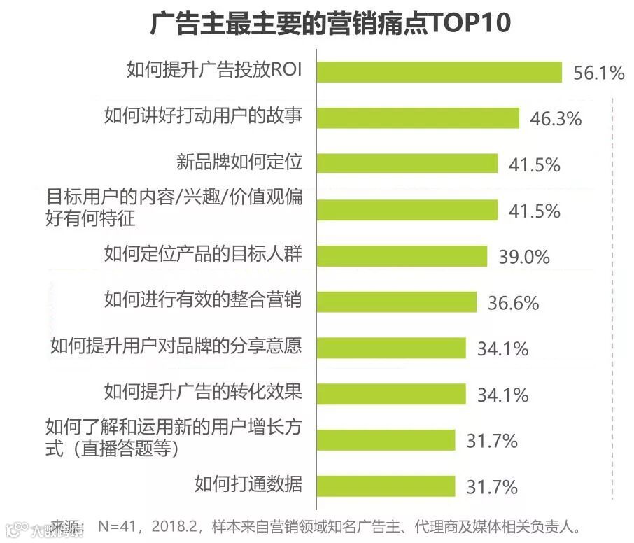 报告指出:“2018年,营销内容的质量和风格重新回归到重要位置,讲好故事成为广告影响消费者的关键。”在广告主营销痛点调研中,讲好故事和品牌定位、整合营销和情感共鸣的需求格外突出,这也印证了创意再营销活动中的重要性。