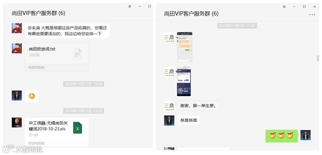 流量宝的能量,一上线就凸显出来。我们的服务团队与尚田团队紧密配合,扩充关键词投放,提升流量精准度,很快,尚田便有了成交订单,朱总发来信息向我们表示感谢。
